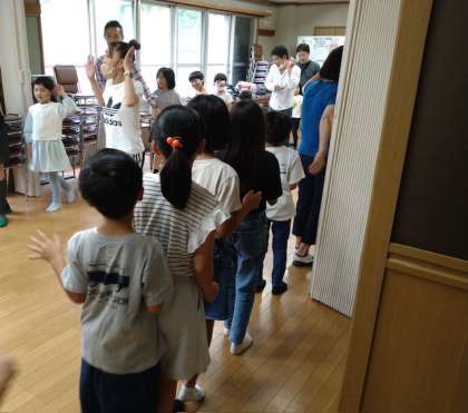 晴明丘会館で盆踊りの練習がありました。「炭鉱節」や「ドンパン節」といったおなじみの曲(ご存知ですか?)の練習が行われ、子ども達は見本の映像や地域方の動きを見て、必死に踊っていました。南小学校の子ども達が多く参加して、地域の方もたいへん喜んでくださっていました。