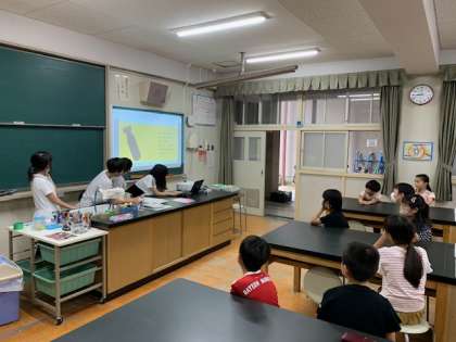 折り鶴を折る前に、6年生から、みんなで折り鶴を折る目的について、プレゼン発表がありました。