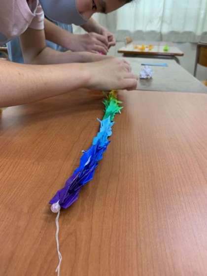 完成した千羽鶴を来週全校児童にお披露目をして、来週23日(金)の修学旅行で、広島の平和記念公園へ献納されます。