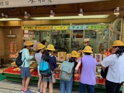 1組はしゃもじ作り、2組はお買い物タイム。