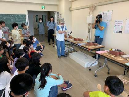 1組と2組、入れ替わってのしゃもじ作り体験。