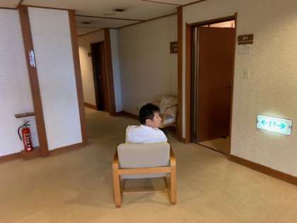 フリータイムの番人は、男子・女子が互いに行き来しないように、廊下中央で鋭い眼を光らせます。