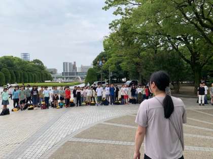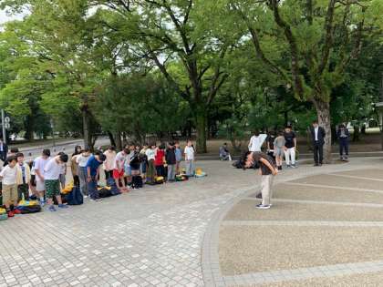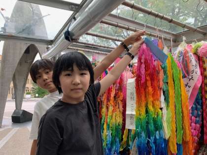 平和への願いがこもった千羽鶴を献納し、みんなで