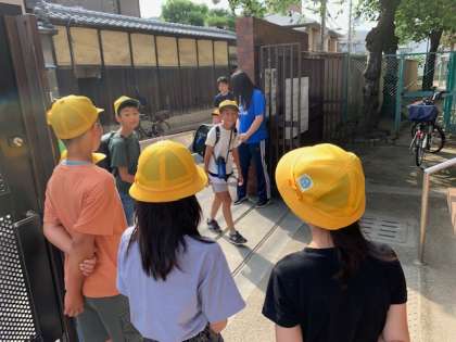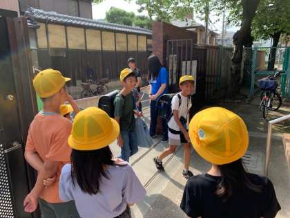 めっちゃ元気なあいさつの声に、登校してきた子どもたちも一瞬立ち止まっていました。