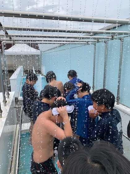 朝から降ったり止んだりのお天気ですが、また曇天で少し肌寒いですが、5年生の子どもたちは、元気いっぱい水泳練習に励みます。