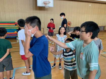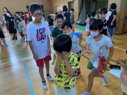 まず、みなみん班の中でじゃんけんをします。負けた人は鬼となり目隠しします。
