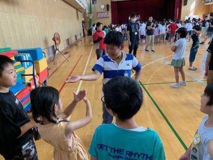 今日の児童集会は、タッチしたのは誰かを当てるシンプルなゲーム。