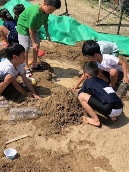 初めのうちは手が汚れるのを気にしていた子どもたちも、気付けば、人類みなきょうだい。