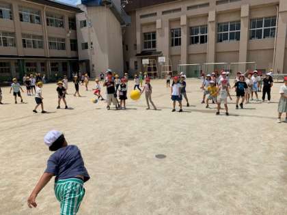 15分休みの運動場には、沢山の子どもたちが遊んでいました。