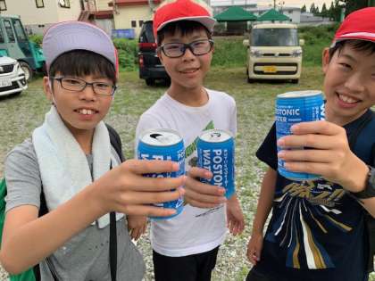 塩焼きの塩分と、スポーツドリンクの塩分で、完璧チャージ。