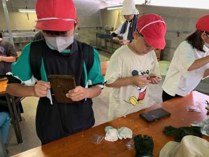 みがきが終わったら、キリで穴を開けてもらいます。