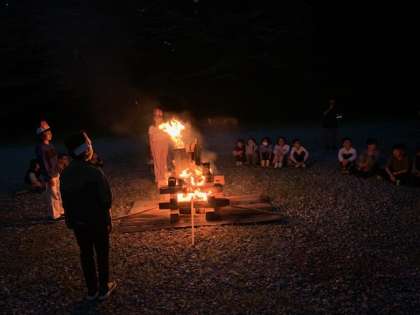 火の粉が巻き上がり、天上まで焦がす勢いで燃え上がります。