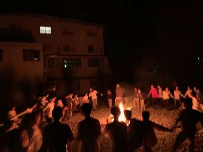 火の周りで全員が手をつなぎ、1つの円になりました。