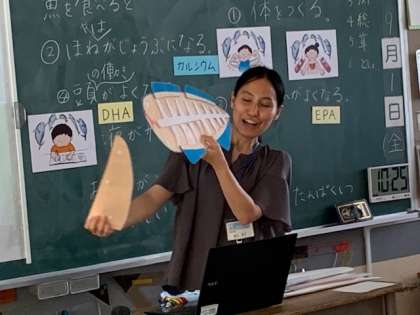 魚を食べると、どんないいことがあるのかや、魚の上手な食べ方などについて学習しました。