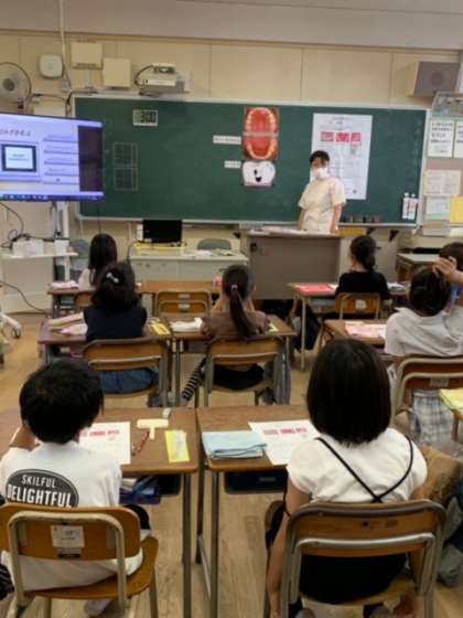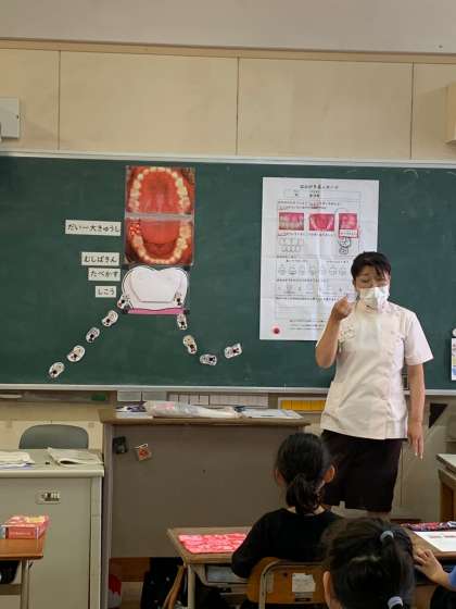 2年生では歯磨き指導がありました。