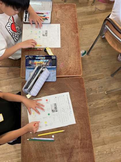 食べ物は(黄)エネルギーのもとになるもの(赤)体をつくるもの(緑)からだの調子を整えるものの、3つの仲間に分かれることを知りました。
