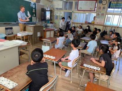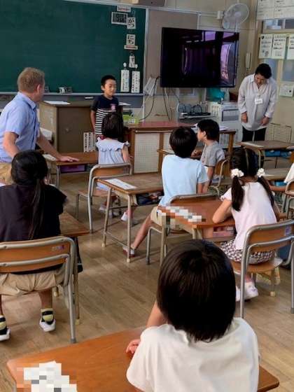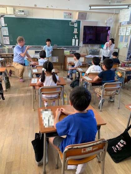 午前中は、1・2年生を対象に全クラスで英語の出前授業がありました。