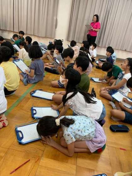 子ども達は、熱心に画面を見て、たくさんのメモをとっていました。