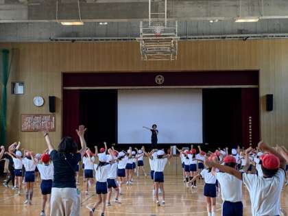 講堂では、3年生と4年生が元気よくダンスの練習。
