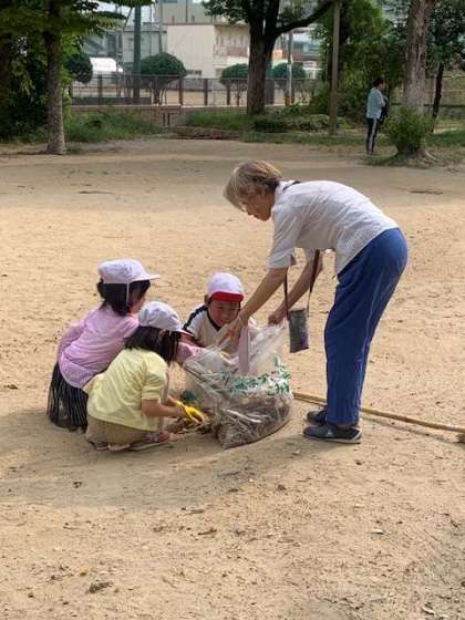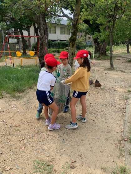 1年生が地域の方々と一緒に公園清掃に参加しました。短い時間でしたが、子ども達は、地域の方々に負けないぐらい一緒懸命に枯葉やゴミを集めていました。