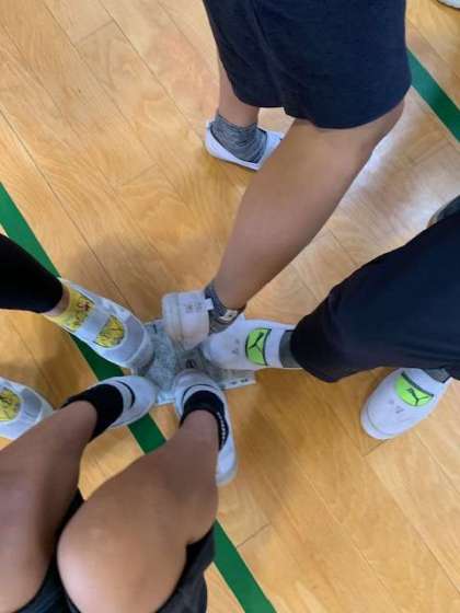 今日の児童集会は、みなみん班を半分に分けてのゲームです。
