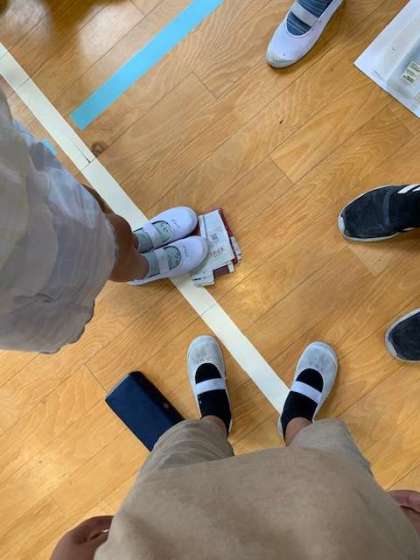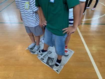 広げた新聞紙にメンバーが乗ったらスタンバイオッケー。