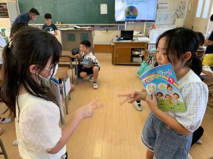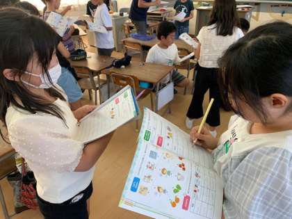 今日は好きな食べ物や色、スポーツなどを英語で聞き合う活動です。