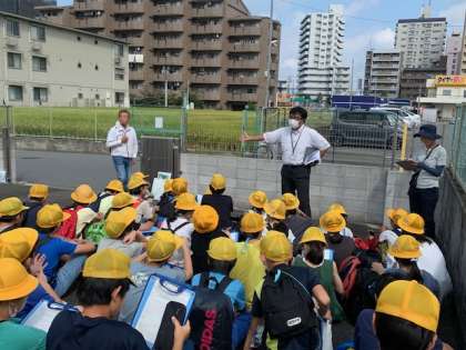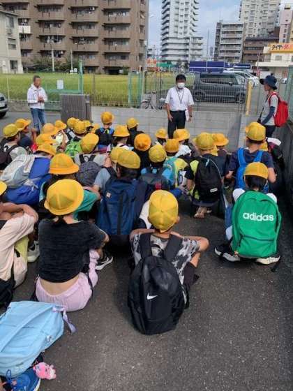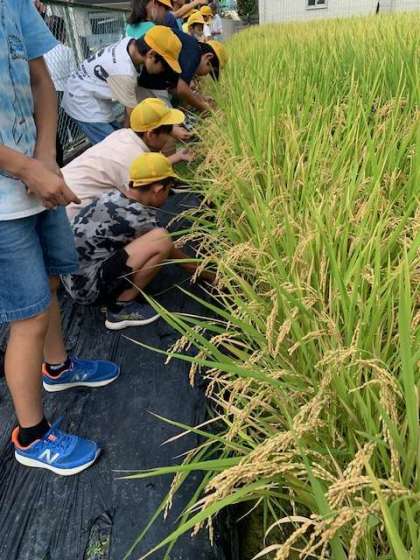 喜連瓜破にある田んぼにやってきました。広い土地にいっぱい実る稲穂を見て、子ども達は驚きの声をあげていました。