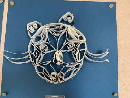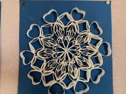 トイレットペーパーの芯を使って、4年生が作ったアート作品。