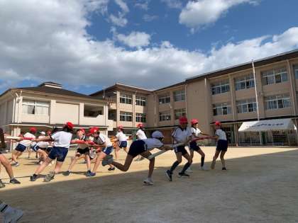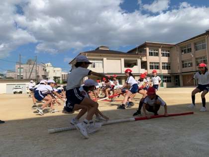 5年生が棒引きの練習中。