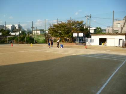運動会に向けて、放課後に運動場を整地しました。ラインを引いて明日の練習の用意ができました。