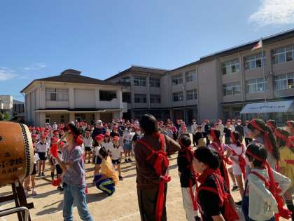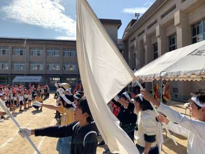 赤白それぞれに、全校を巻き込んでの声出し応援の場面があります。