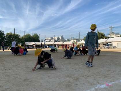 全体集合してから、それぞれの係に分かれ、運動会当日のリハーサルをします。