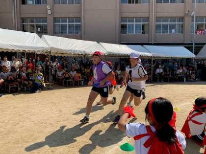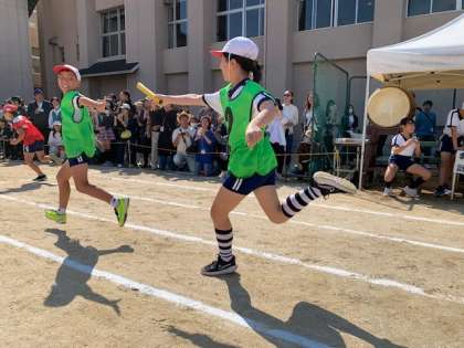 バトンゾーンをいっぱいに使って、少しでも前へ。