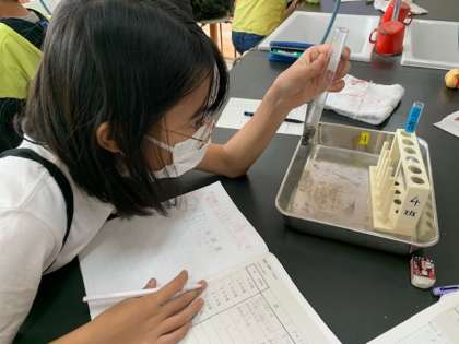 5分ごとの水溶液中の変化を、克明に記録していきました。