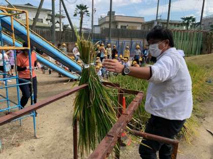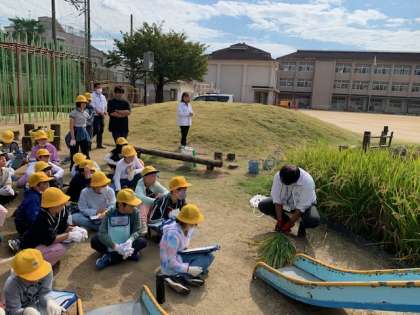 5年生の米作りも、いよいよ刈入れのときを迎えました。