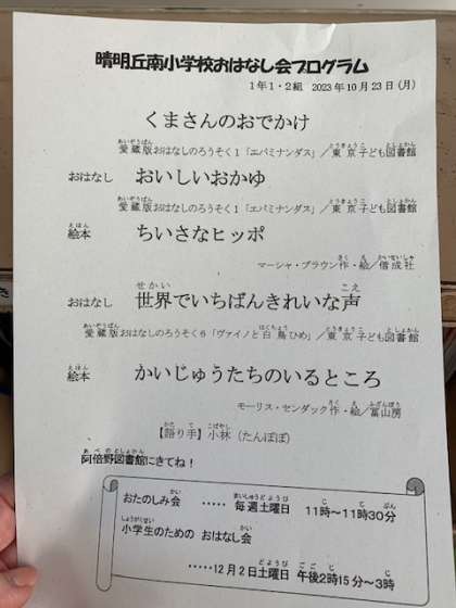 10月23日(月)おはなし会 1年生