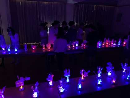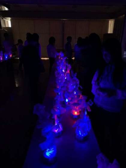 6年生のLEDライトを使ったオブジェのお披露目会。