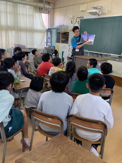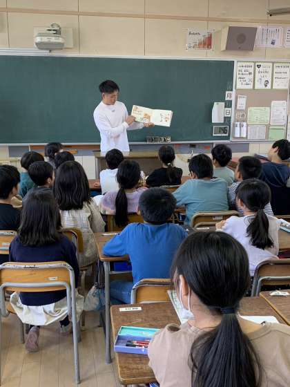 いつもと違うクラスで、絵本の読み聞かせに挑戦する先生たちです。