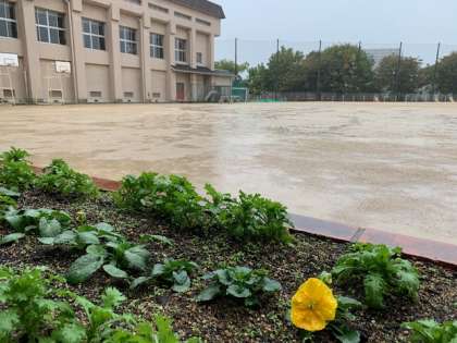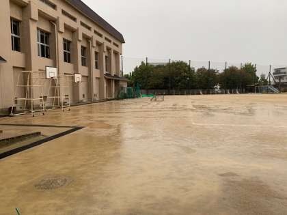 その後、非常に強い降り方で、運動場はことごとく水浸しとなりました。