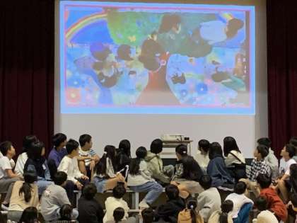 少しずつ描き足され、全体像が浮かび上がっていくさまを、皆が固唾を飲んで見守ります。