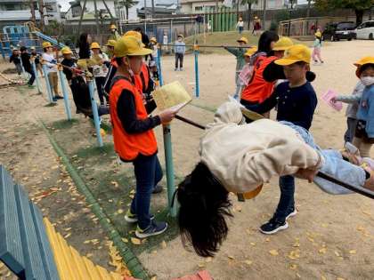 今季一番の冷え込みの中ですが、1年生、冷たい鉄棒も何のそのです。