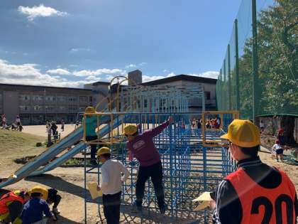 体力アップアイテムにジャングルジムも入っていて、ジャングルジムの上を周ってから上る運動もあります。