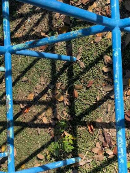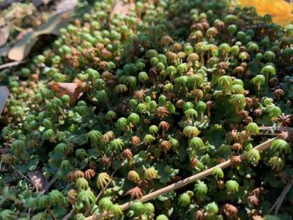 何気にジャングルジムの下を見ると、綺麗な緑が広がっているので、さらに目を凝らしてみると、何と、コケの群落!