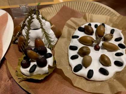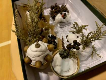 どんぐりや木の実のトッピングがにぎやかな森のケーキ。