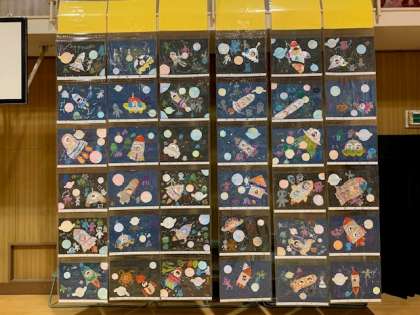 別に製作したアルミロケットとマーブリング惑星を、星が散りばめられた宇宙にインストール。