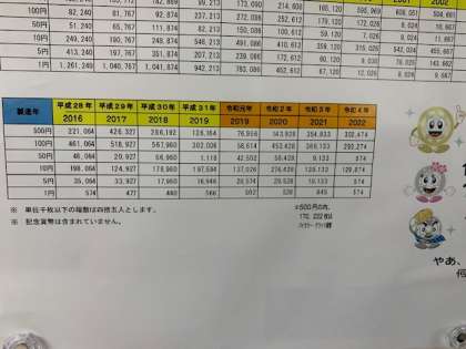 ちなみに1円硬貨の製造は減少傾向にあるとのこと。