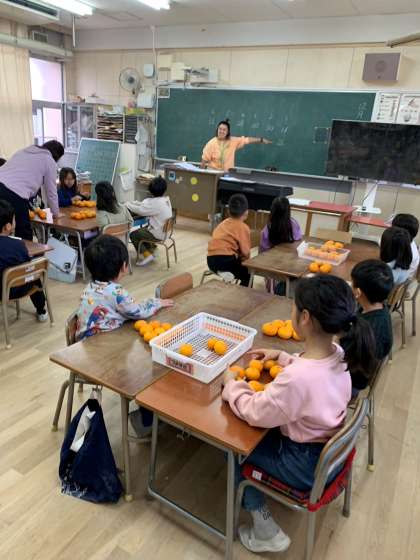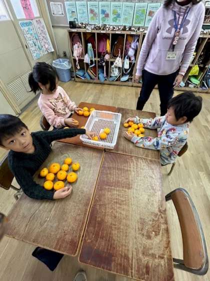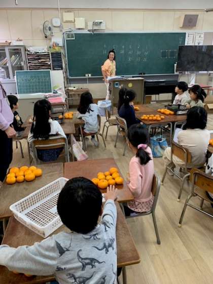 1年生が算数の時間に、収穫した蜜柑の数をカウントしました。