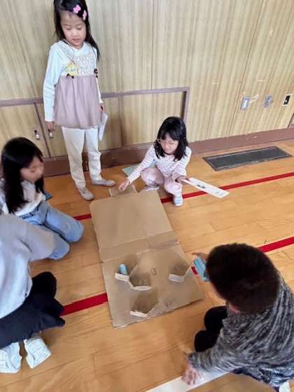アドバイスをもらった2年生の「進化版」おもちゃは、1年生に大好評でした。