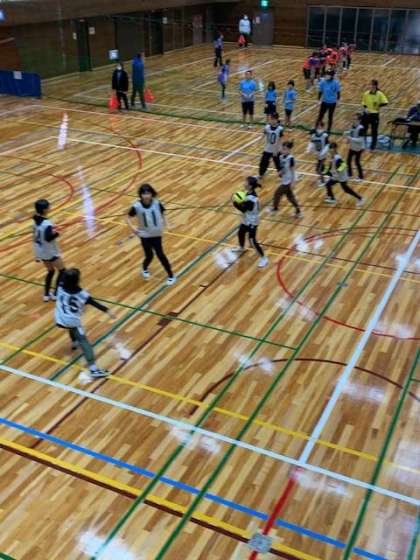 試合直前には、円陣を組んで元気なかけ声が出ました。1回戦は丸山小との対戦でした。作戦を立て、上手に逃げたり、パスを回したりして、軽快な動きをしていた子ども達。残念ながら、少しの差で負けてしまいました。